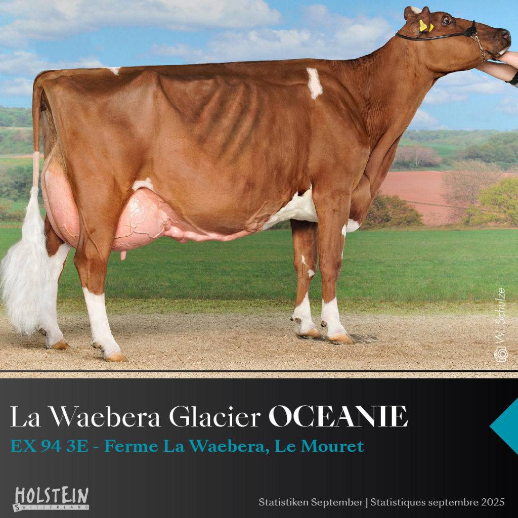 La Waebera Glacier OCEANIE EX 94 3E, Ferme La Waebera, in Le Mouret wurde mit ihrem 10 Stern ausgezeichnet. Bei einer Lebensleistung von 102'090 kg mit Inhaltsstoffen von 3.96% Fett und 3.46% Eiweiss ist sie ebenfalls mit der Goldmedal ausgezeichnet.